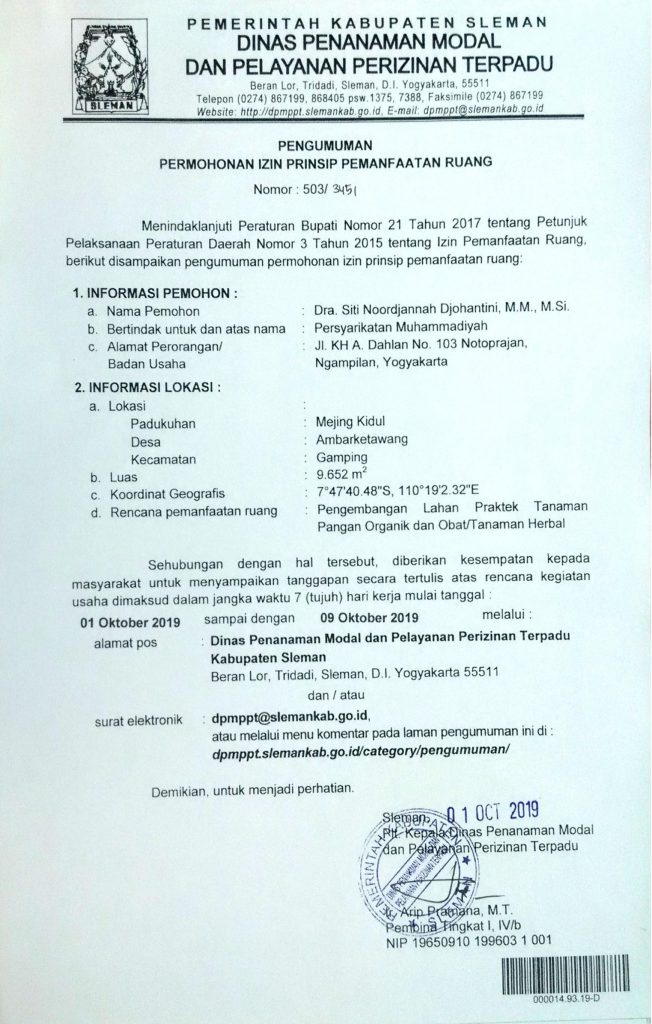 PENGUMUMAN PERMOHONAN IZIN PRINSIP PEMANFAATAN RUANG